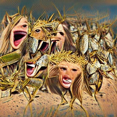 AI has proven its ability to leap far beyond the human imagination in the realm of artistic expression. This image was created from an AI based on the text in Revelation 9 in the description of the locusts that I put in online.